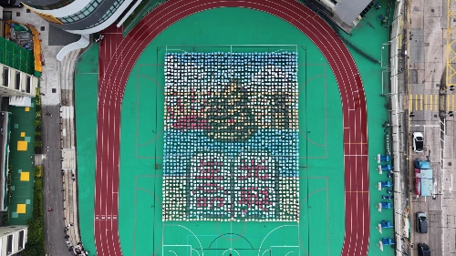 這次活動我們邀請了Pixel Art 藝術家Fatbeard設計了兩個圖案。拍攝當日,2000位中、小、幼學生及老師手持雙面的卡紙,2000人同一時間舉起卡紙,於航拍機的鏡頭中顯示出第一個圖案,然後2000人再將卡紙一同反轉,顯示出第二個圖案,場面實在震撼!相信這次亦是學界其最多人參與的一個活動紀錄。