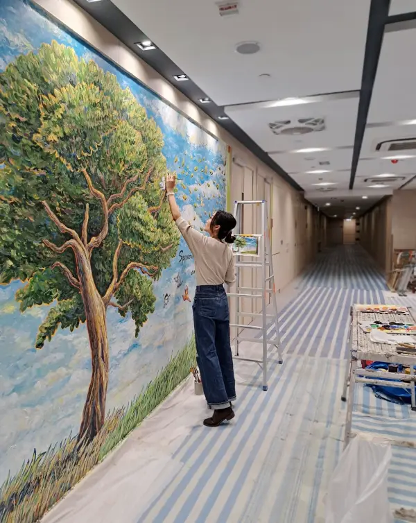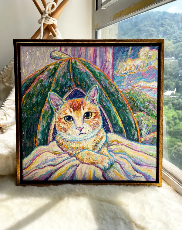 Her artworks are infectious, with each stroke filled with emotion. She has recently participated in art exhibitions and created customized painting, letting more people to find resonance and warmth through her art.